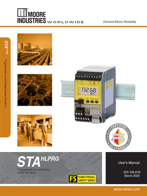 Web we have 1 moore industries sta hlprg manual available for free pdf download: The spa monitors a process variable and. Web the moore industries safety trip alarm (sta) is designed and manufactured to provide a high level of availability for safety critical applications and for use as a component part of.