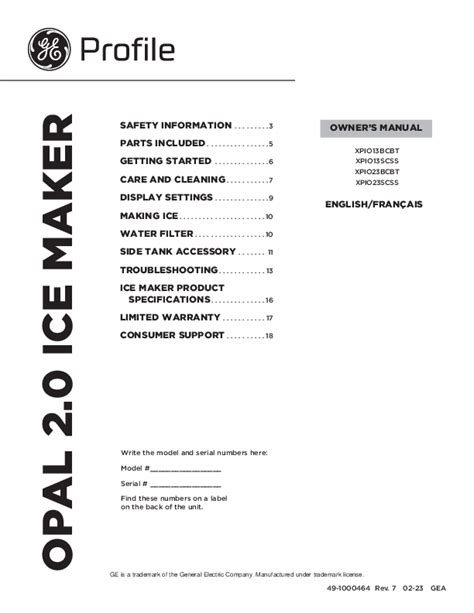 Web This Ge Profile Opal 2.0 Ice Maker Manual Provides Important Safety Information And Instructions For Models Xpiox3Scbt And Xpiox3Scss.