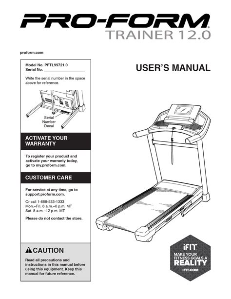 Page 1 customer hot line: Proform 12.0 manuals manuals and user guides for proform 12.0. Use the treadmill only as described in this manual.