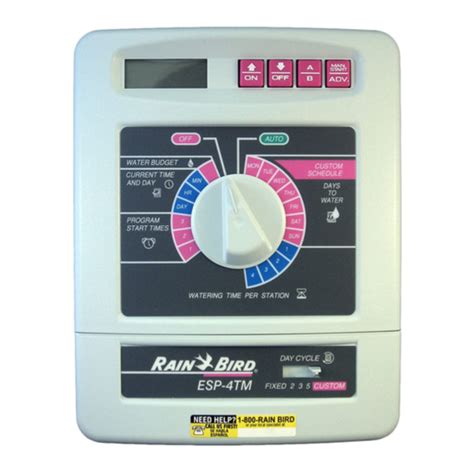 Rainbird Esp-Tm Manual. Description runrun time time fixed day cycle2 days 3 days 5 days (appliestoallprograms) water budget. Works for 6tm, 8tm, 4tm and the rainbird si models.