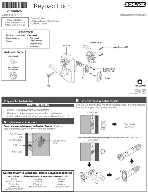 Schlage Keypad Lock FE575 Installation Manual Manuals+ from manuals.plus